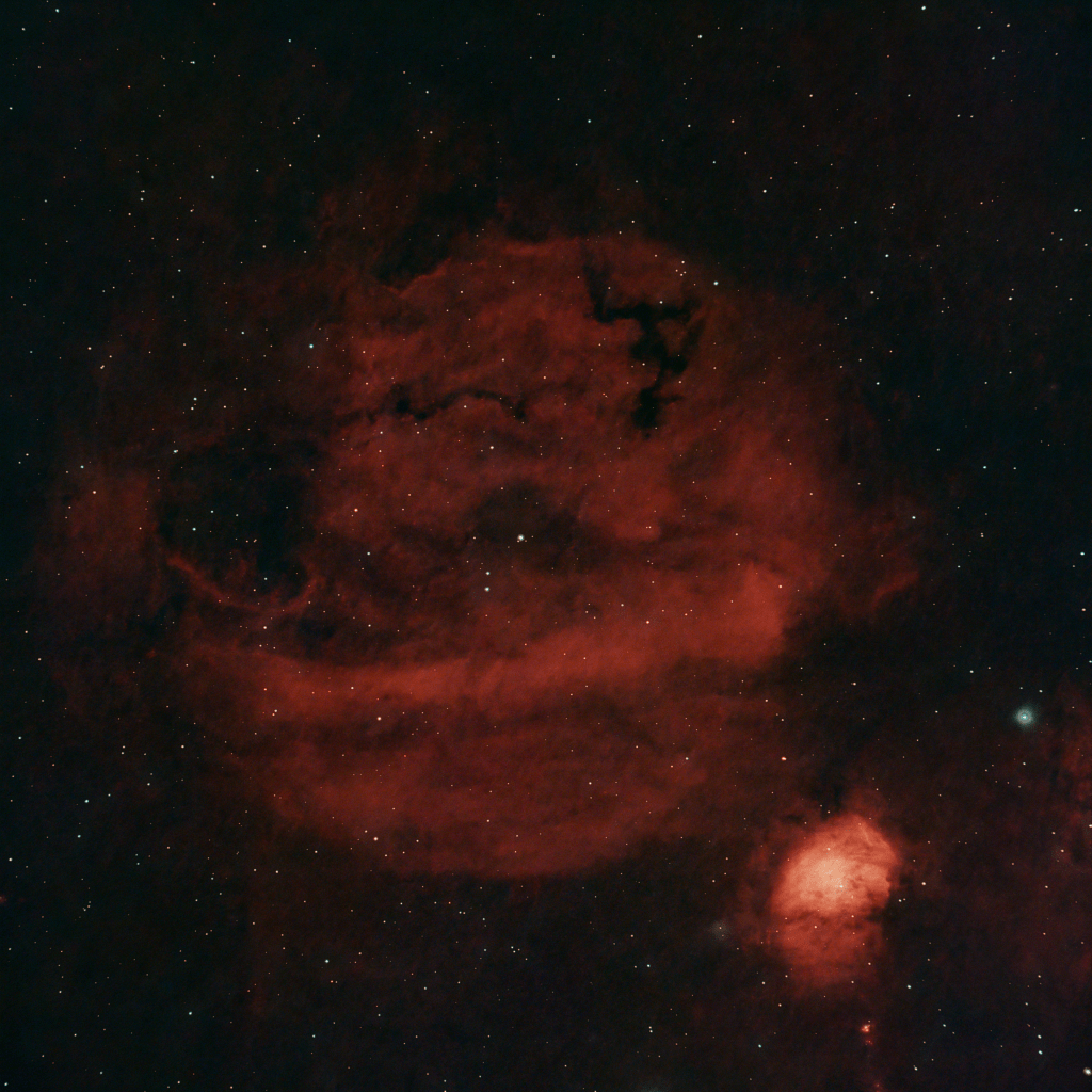 Sh2-232 captured on 1-6-25. This is a faint HII region in the constellation of Auriga, which lies prominently in the northern sky. The brighter nebula in the vicinity offers a stunning contrast against the dark background of space, showcasing vivid colors produced by the ionization of hydrogen gas. As an area of star formation, Sh2-232 is not only of interest to amateur astronomers but also to professional researchers studying the dynamics of stellar birth and the processes that drive the evolution of galaxies. Its faint glow can sometimes challenge observers, requiring dark skies and sensitive equipment to truly appreciate its beauty.