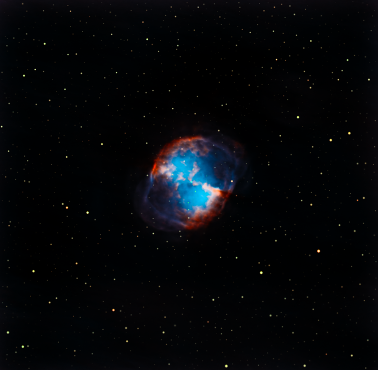 Top Left and middle left – The Helix Nebula and Dumbbell nebulas are a planetary nebula formed from stars, not unlike our Sun, throwing off their outer layers as they shrink to their white dwarf stage of life. Planetary nebulas can take many different forms depending on the symmetry or asymmetry of how the outer shell is expelled.