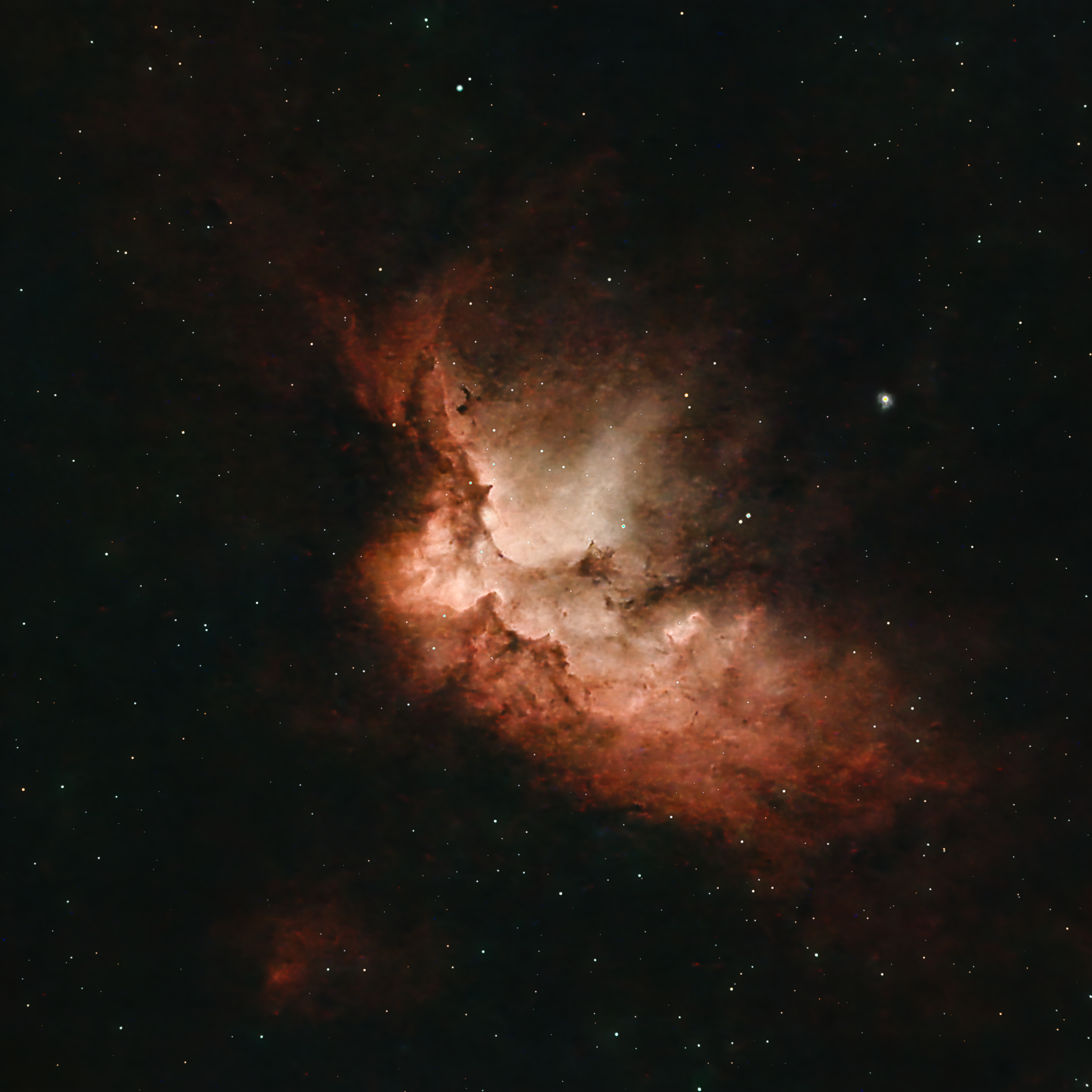 Top right – The Wizard Nebula. This is another example of an emission nebula. Somewhere in the center of the nebula is a star, or many stars that are exciting the surrounding gasses. In this case, its Hydrogen and Oxygen.